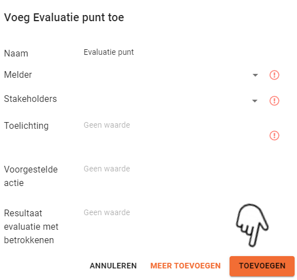 Wijzig de tekst “Evaluatie punt” in de naam van je evaluatiepunt, vul het scherm verder in en klik op “Toevoegen”. Voeg eventueel nog meer evaluatiepunten in.