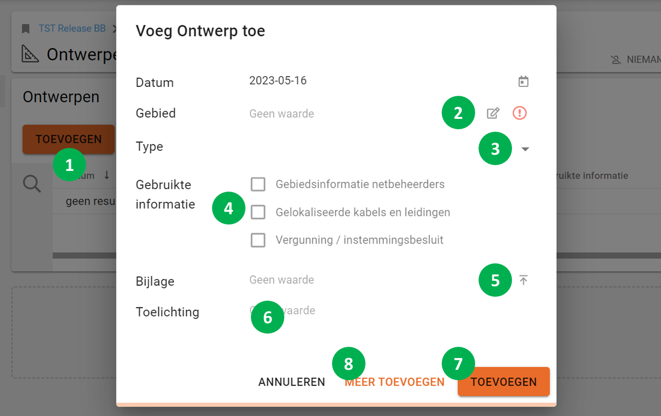 Kies welke type ontwerp je gaat toevoegen. Je kunt hierbij kiezen uit Schetsontwerp, Voorlopig ontwerp, Definitief ontwerp en Uitvoeringsontwerp.