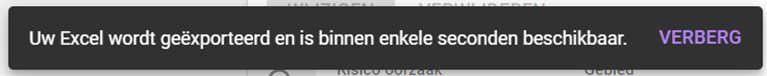 Wanneer u op de knop “Exporteren naar Excel” hebt geklikt zult u onderstaande bevestiging links onder in uw scherm zien. De download is gestart en zal binnen enkele seconden in uw downloads folder beschikbaar zijn.