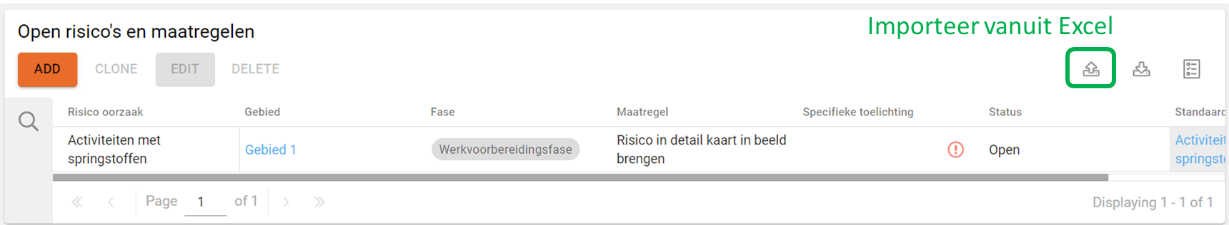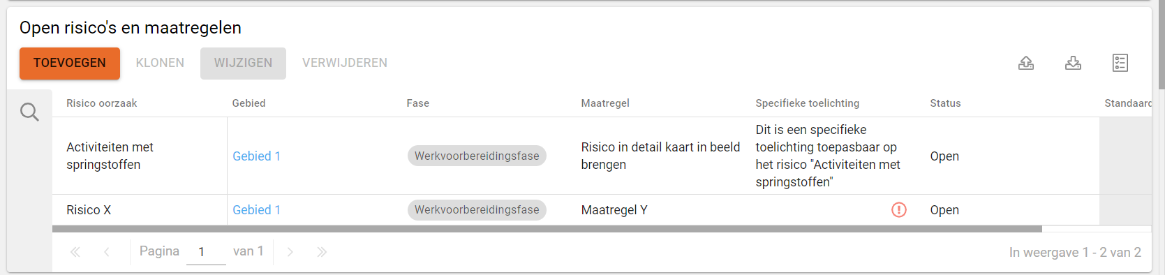 Resultaat van de geïmporteerde Risico’s en maatregelen.