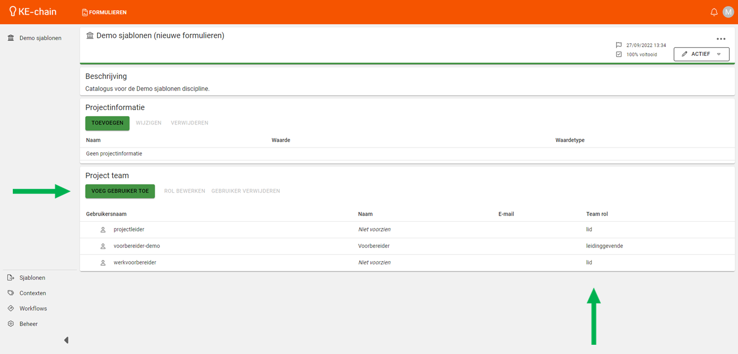 Verleen toegang tot de catalogus aan alle leidinggevenden van de projecten. Door deze toe te voegen als lid hebben zij wél de mogelijkheid om sjablonen te importeren, maar niet de mogelijkheid om deze in de catalogus aan te passen.