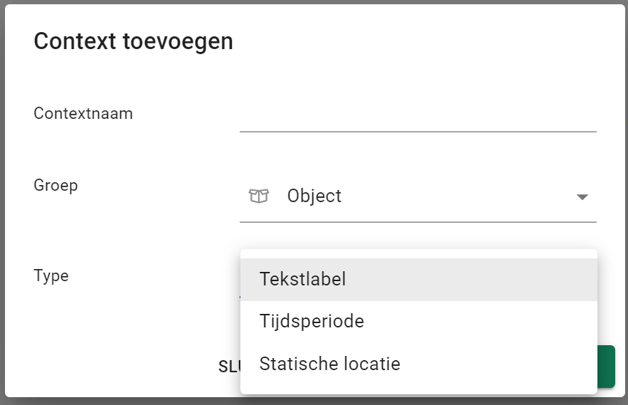 Het is ook mogelijk om contexten in bulk toe te voegen, ook via Excel. Voor meer informatie over hoe dit moet ga naar de volgende pagina: Hoe importeer ik contexten vanuit Excel? .