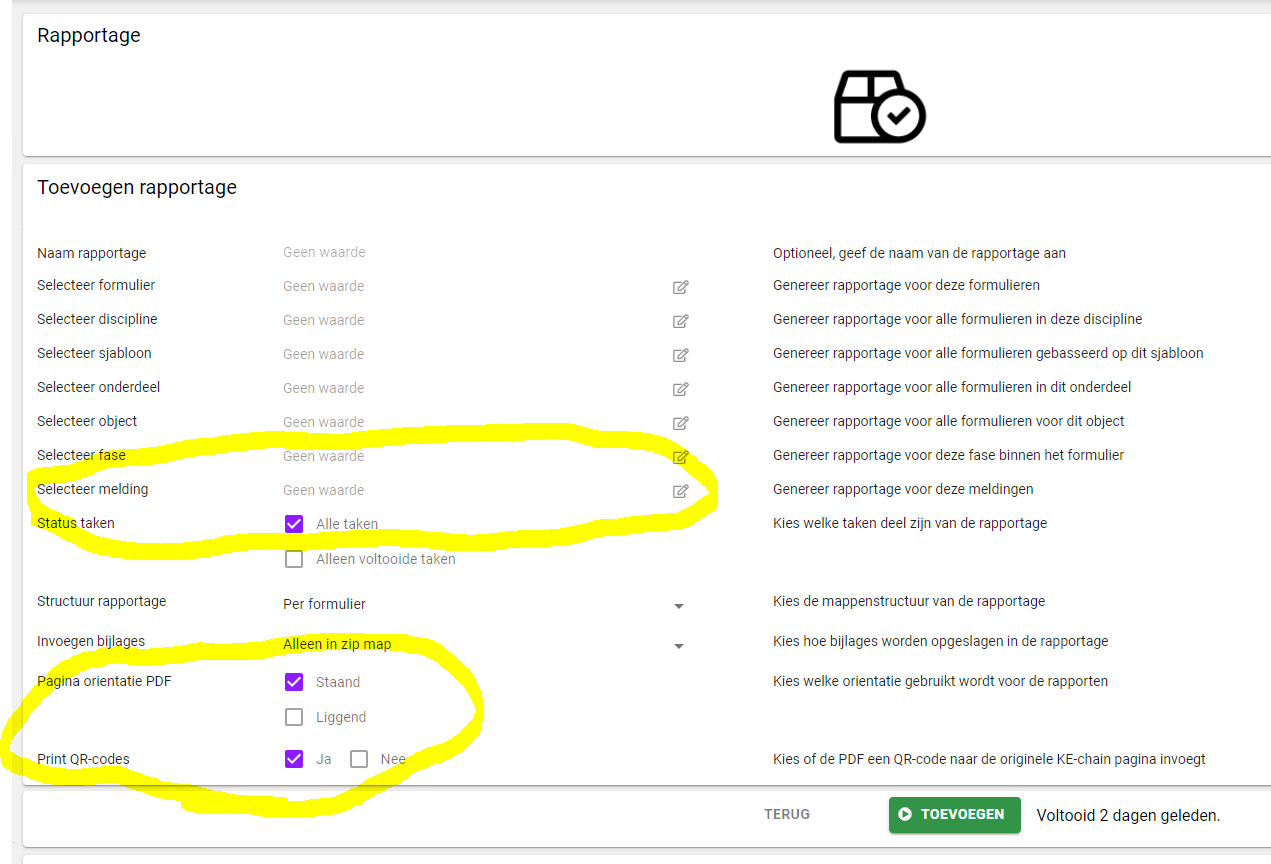 Verder is het nu mogelijk om meldingen op te leveren in een project rapportage. Wanneer men meldingen selecteerd, zal er automatisch in de project rapportage een pdf per melding toegevoegd worden in een map "Meldingen".