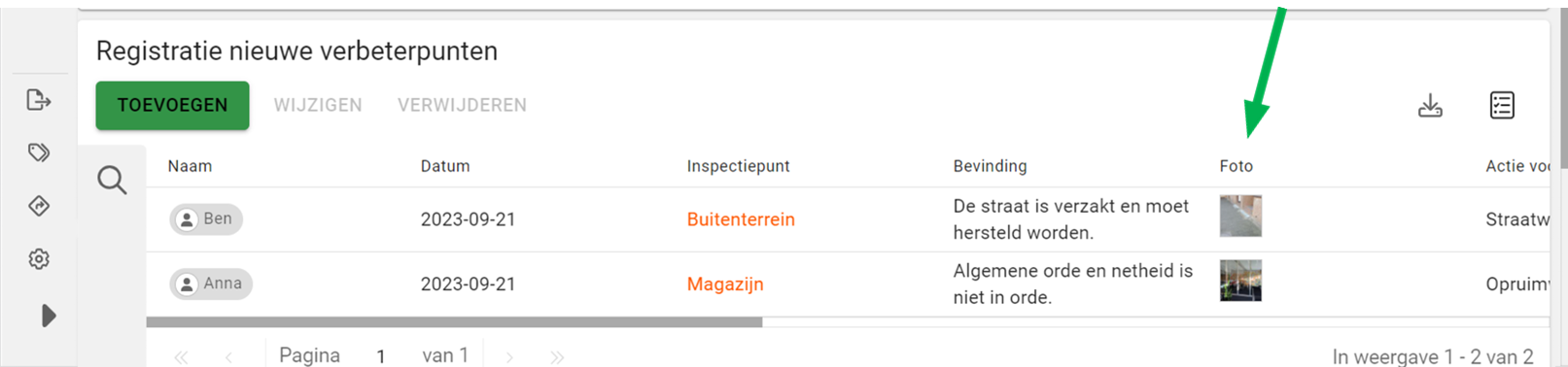 Zo zien ingevulde tabellen eruit met thumbnails aan. Alle afbeeldingen worden als pictogrammen getoond. Deze thumnails worden ook getoond in het pdf.