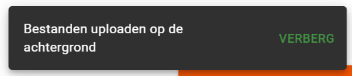 Pop-up om aan te geven dat bestanden geupload worden op de achtergrond