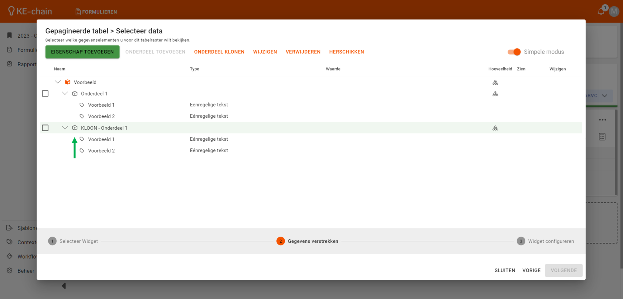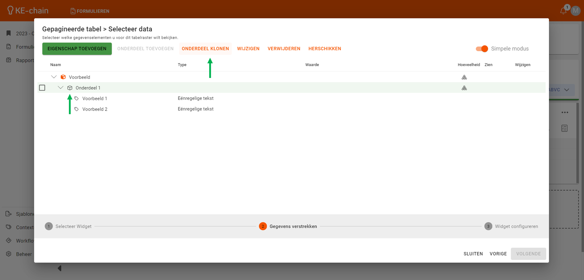 Het wordt nog beter! We hebben ook de mogelijkheid toegevoegd om onderdelen te klonen in een sjabloon bij gegevens verstrekken. Wanneer je herhalende onderdelen of eigenschappen wilt configureren in een sjabloon, kun je deze nu snel toevoegen binnen de bewerkomgeving van een sjabloon. Deze functionaliteit was al beschikbaar in het datamodel, maar nu direct beschikbaar gemaakt in de widget editor. Hiermee bespaar je extra klikken en daarmee tijd bij het opstellen van sjablonen!