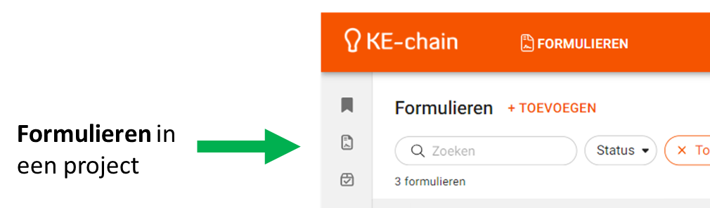In de bovenbalk is een knop voor alle formulieren over alle projecten.