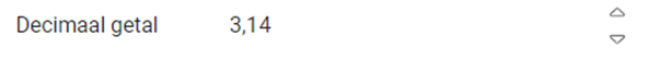 Decimaal getal | ![]() | Invoerveld voor getallen met een komma (decimaal). Validatie opties: mogelijk op minimale of maximale waarde. |