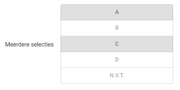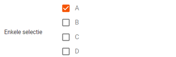 Enkele selectie | ![]() | Hier maakt u gebruik van een selectie-eigenschap. De enkele selectie bepaalt dat er maximaal 1 waarde geselecteerd kan worden. Deze selectievelden kunnen gebruikt worden om slim te filteren in tabellen. |