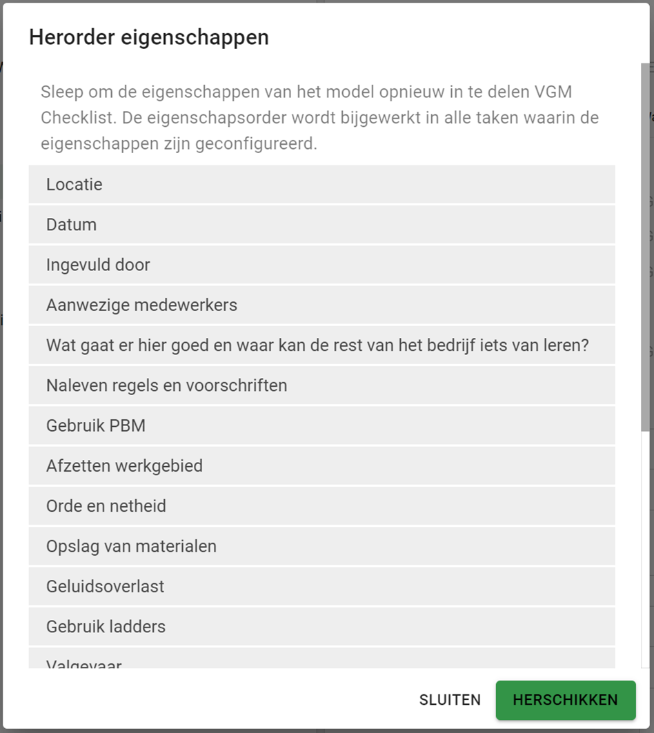Geef de eigenschappen een goede volgorde en bevestig met de knop herschikken.
