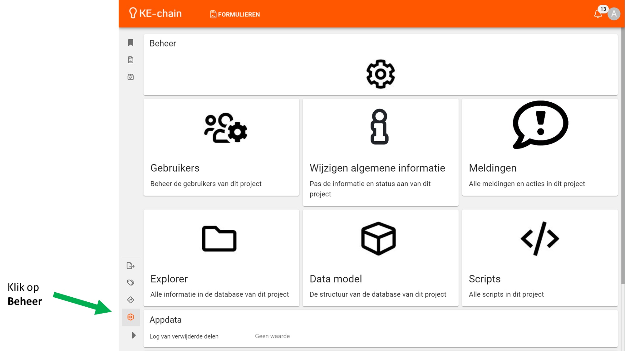 Ga via het zijmenu naar Beheer