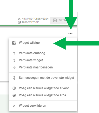 Via de drie puntjes rechtsboven de widget ga je naar widget wijzigen
