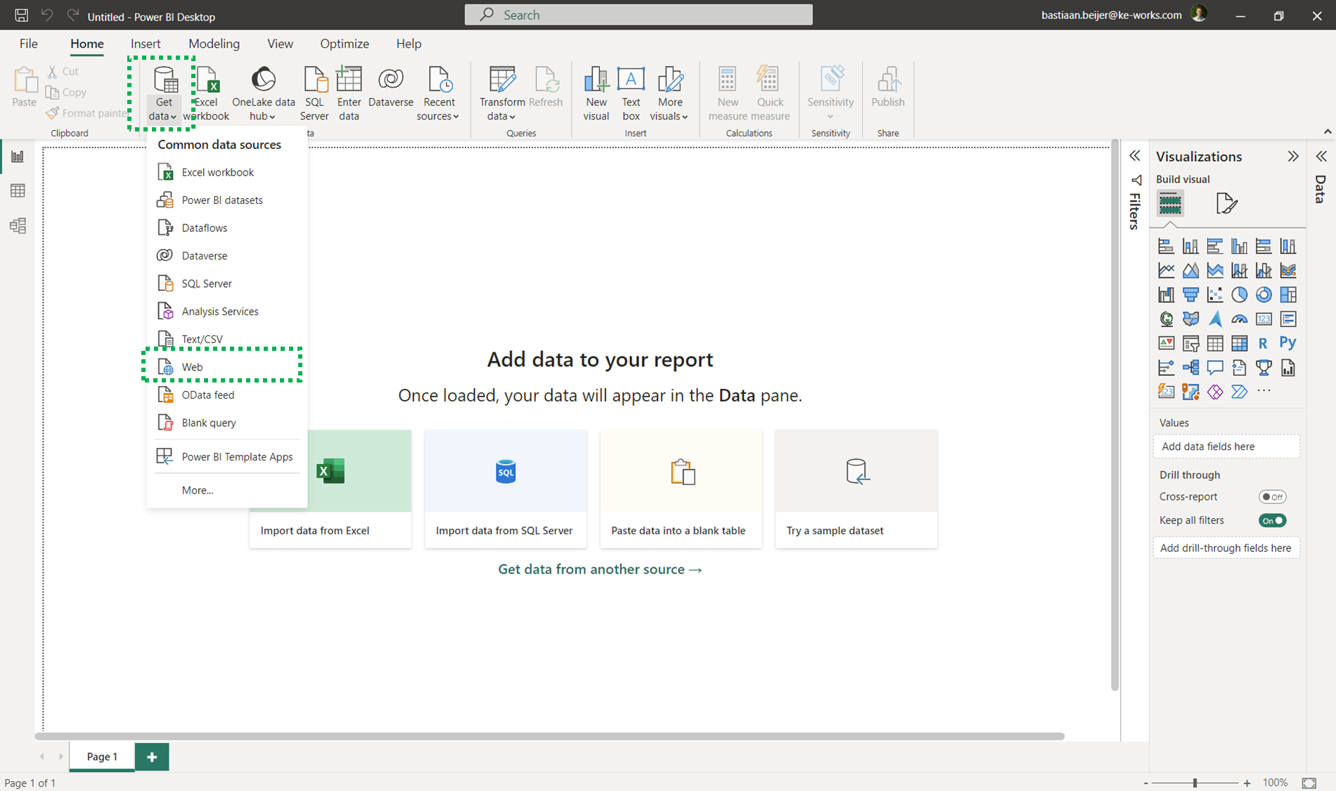 Voeg nieuwe data toe aan Power BI via Home > Get data > Web