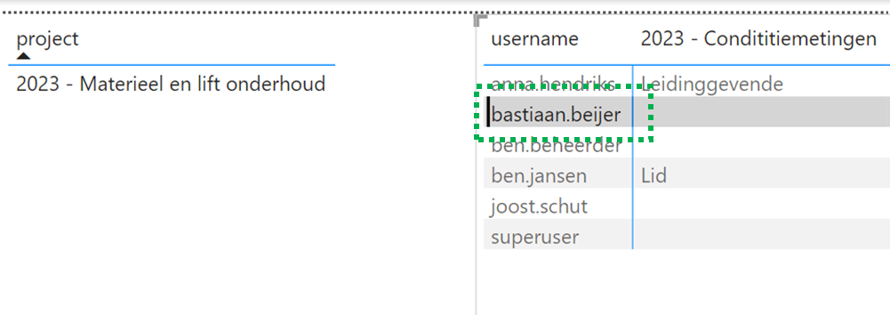 Use-case 1: Klik op een Projectnaam om de gekoppelde gebruikers en hun rollen te zien: