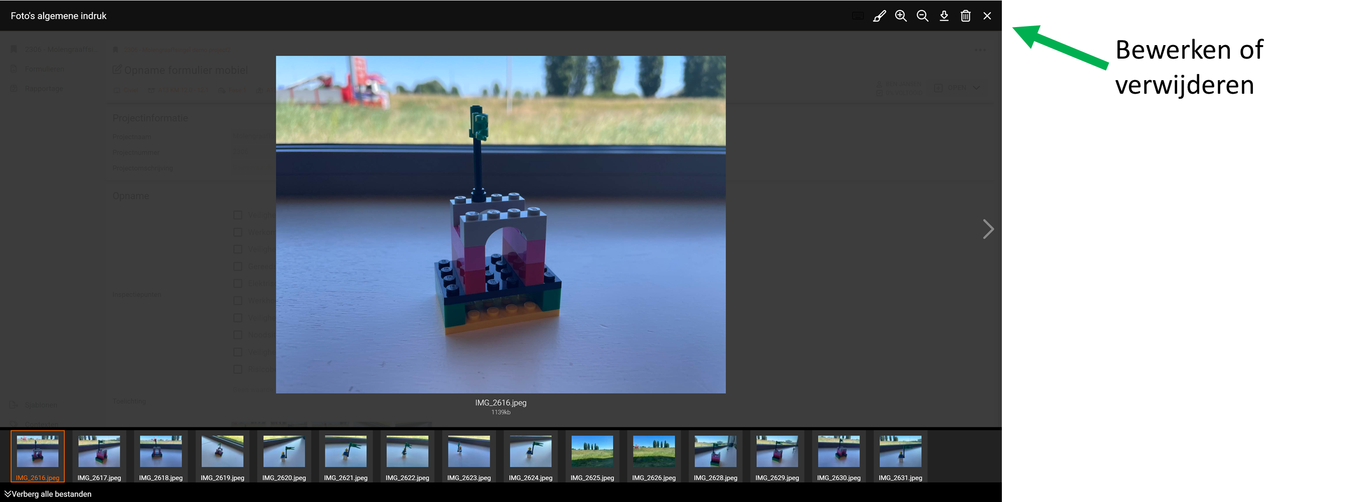 Door te klikken op een thumbnail, kun je alle bijlagen zien in een galerij. Hier is het ook mogelijk om een afbeelding te bewerken of verwijderen