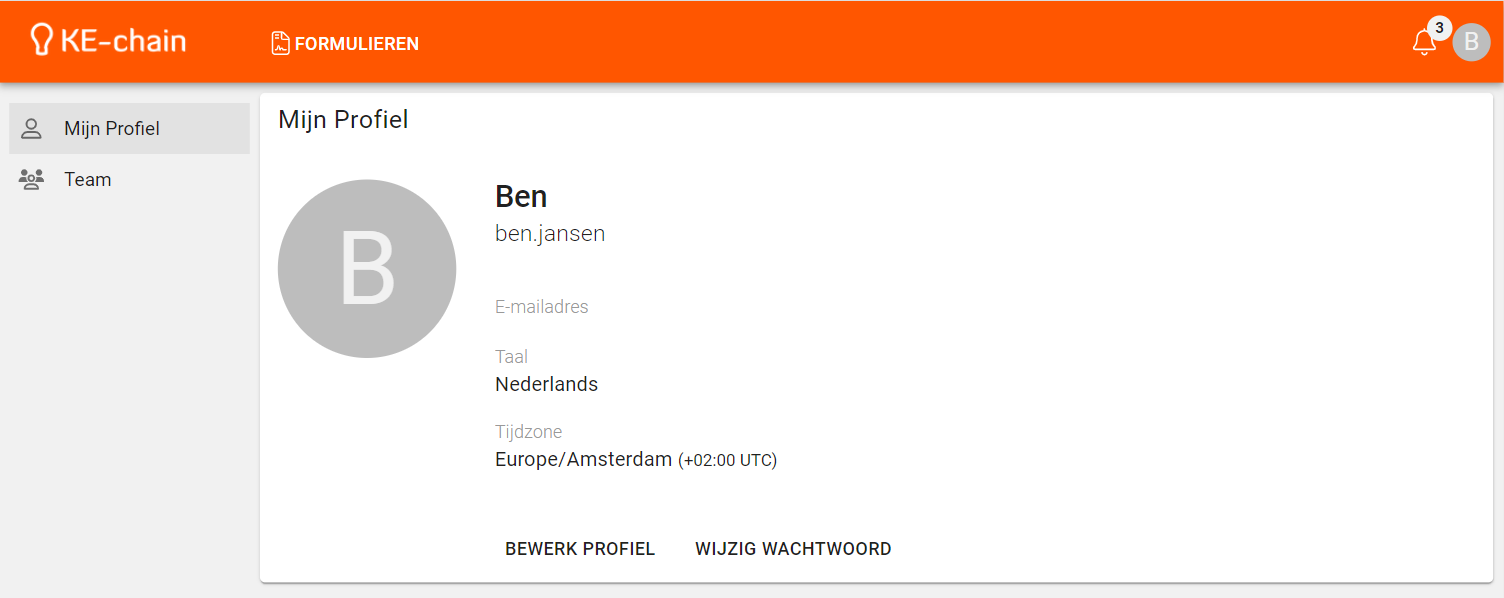 Via deze knop komt u bij de instellingen voor de weergave van KE-chain. We hebben een lichte en donkere modus. Voor meer informatie zie: De donkere modus (dark mode) .