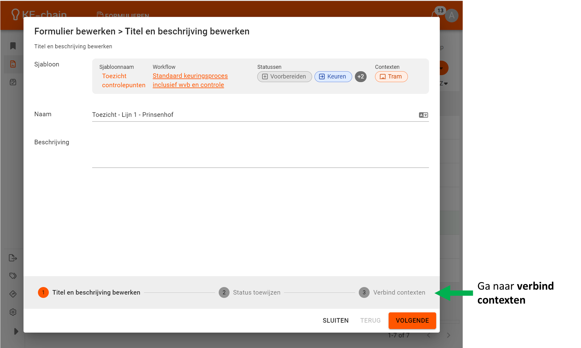 Wanneer je klikt op wijzigen, komt onderstaand dialoog naar boven. Je kunt de naam van het formulier aanpassen, of gelijk navigeren naar verbind contexten.