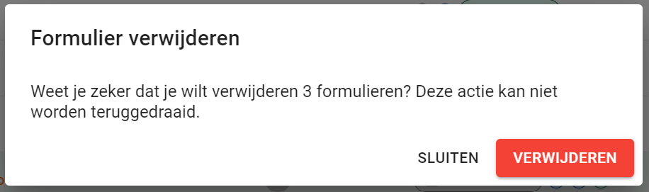 Let op: het verwijderen van formulieren is permanent en kan niet ongedaan gemaakt worden. Er is geen prullebak om verwijderde formulieren in te zien.