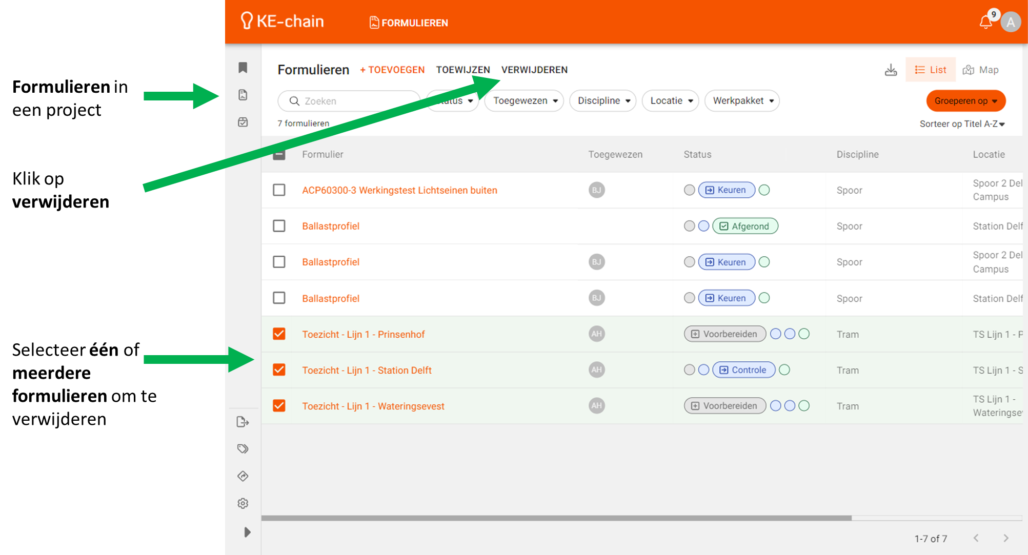 Het verijderen van formulieren gaat via het formulieren overzicht