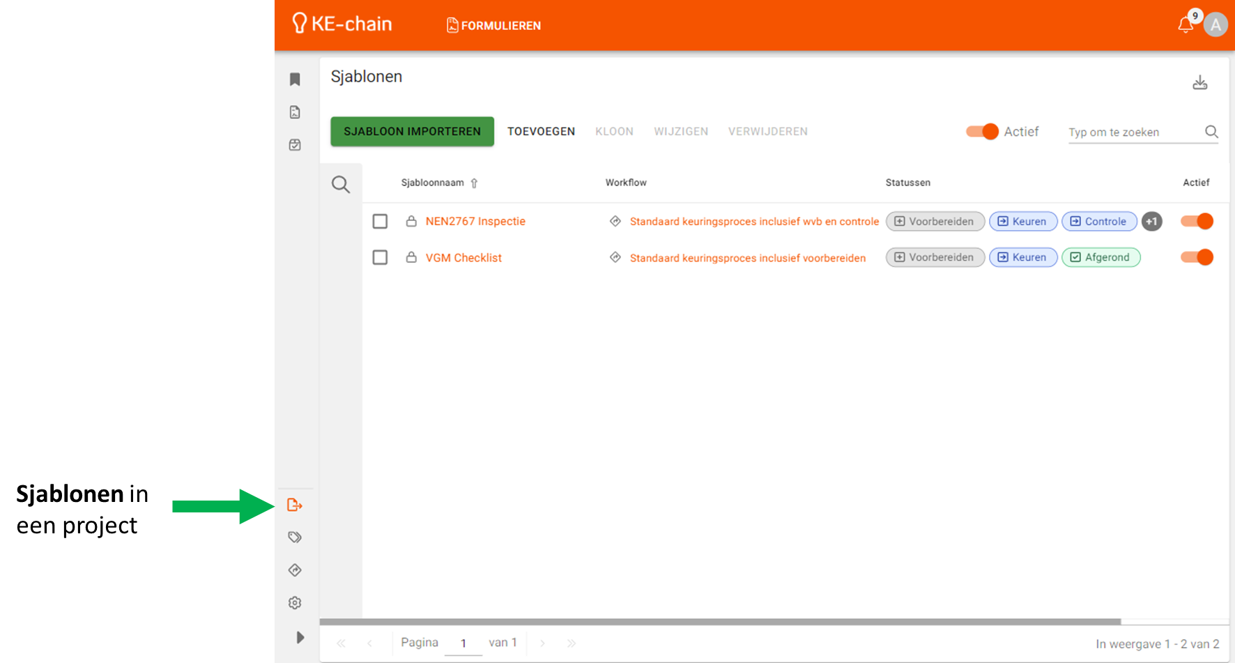 - Wat betekent het vinkje 'actief' bij sjablonen en workflows?