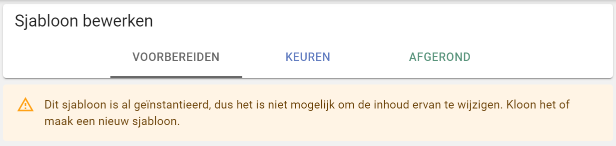 Wanneer je een sjabloon wilt bewerken wanneer deze al gebruikt wordt in formulieren is een waarschuwing zichtbaar.