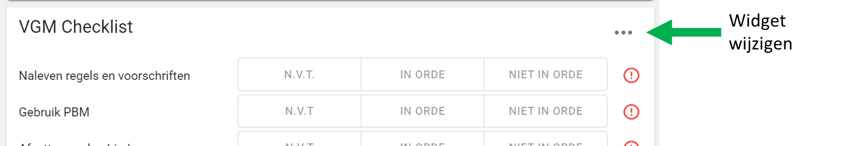 KLik op de drie puntjes rechtsboven een widget om een widget te wijzigen (of te verwijderen).