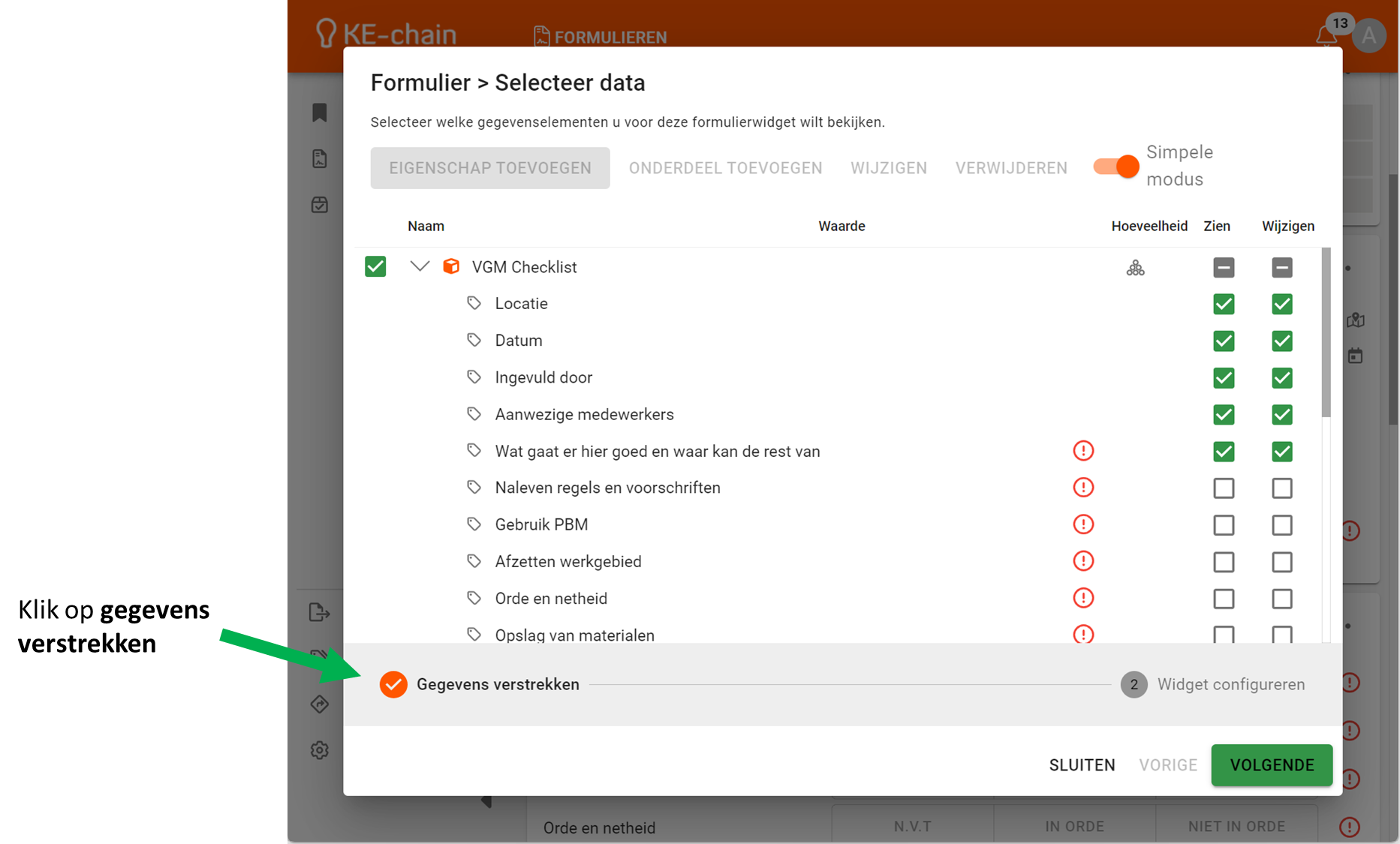 Klik vervolgens het onderdeel aan en klik op eigenschap toevoegen. Nieuwe eigenschappen staan onderaan. Wil je eigenschappen een andere volgorde geven, kijk dan op de pagina: Hoe kan ik de volgorde van eigenschappen wijzigen?. Wanneer je eigenschappen wilt verwijderen kijk dan op de volgende pagina: Ik heb per ongeluk de verkeerde eigenschap toegevoegd. Hoe kan ik deze eenvoudig aanpassen? .
