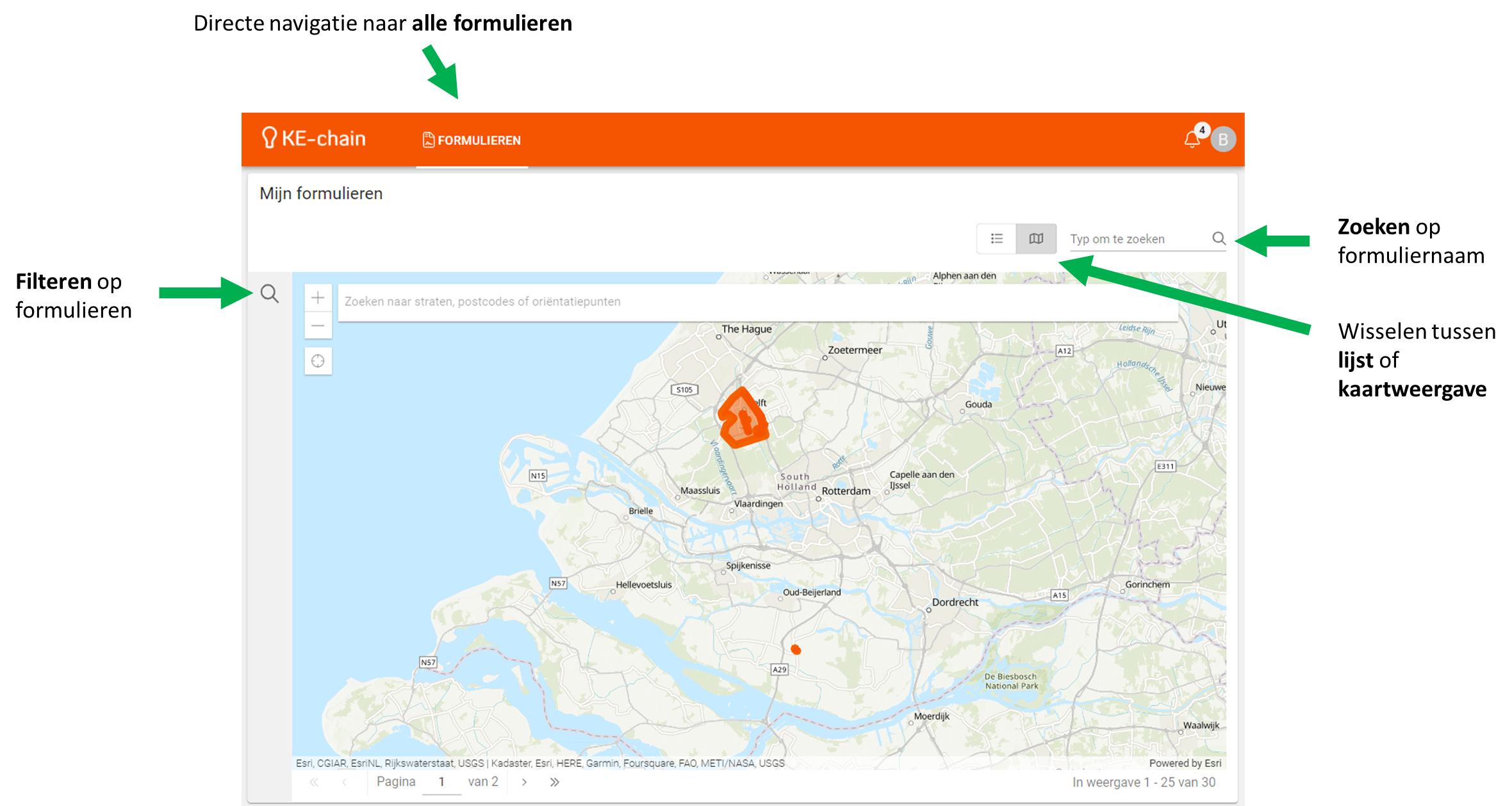 Het formulierenoverzicht over alle projecten: kaartweergave