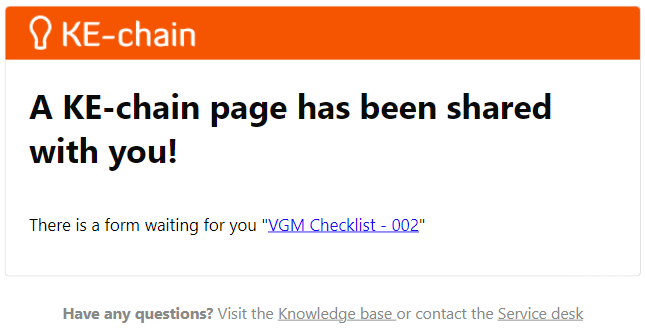 Tip: Het is handig om de mails van KE-chain van deze meldingen altijd te bewaren (stel hier Outlook-regels voor in: op deze manier worden de mails automatisch in een door u gekozen map geplaatst). Op deze manier kan een uitvoerder altijd eenvoudig in de mail ook zoeken naar het formulier.
