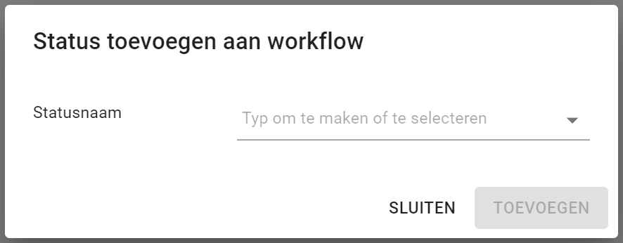 Voeg een status toe voor elke stap in de workflow. Bij het toevoegen van een nieuwe status krijg je de mogelijkheid om een nieuwe status toe te voegen door een naam in te voeren, of je kunt kiezen uit reeds aangemaakte statussen.